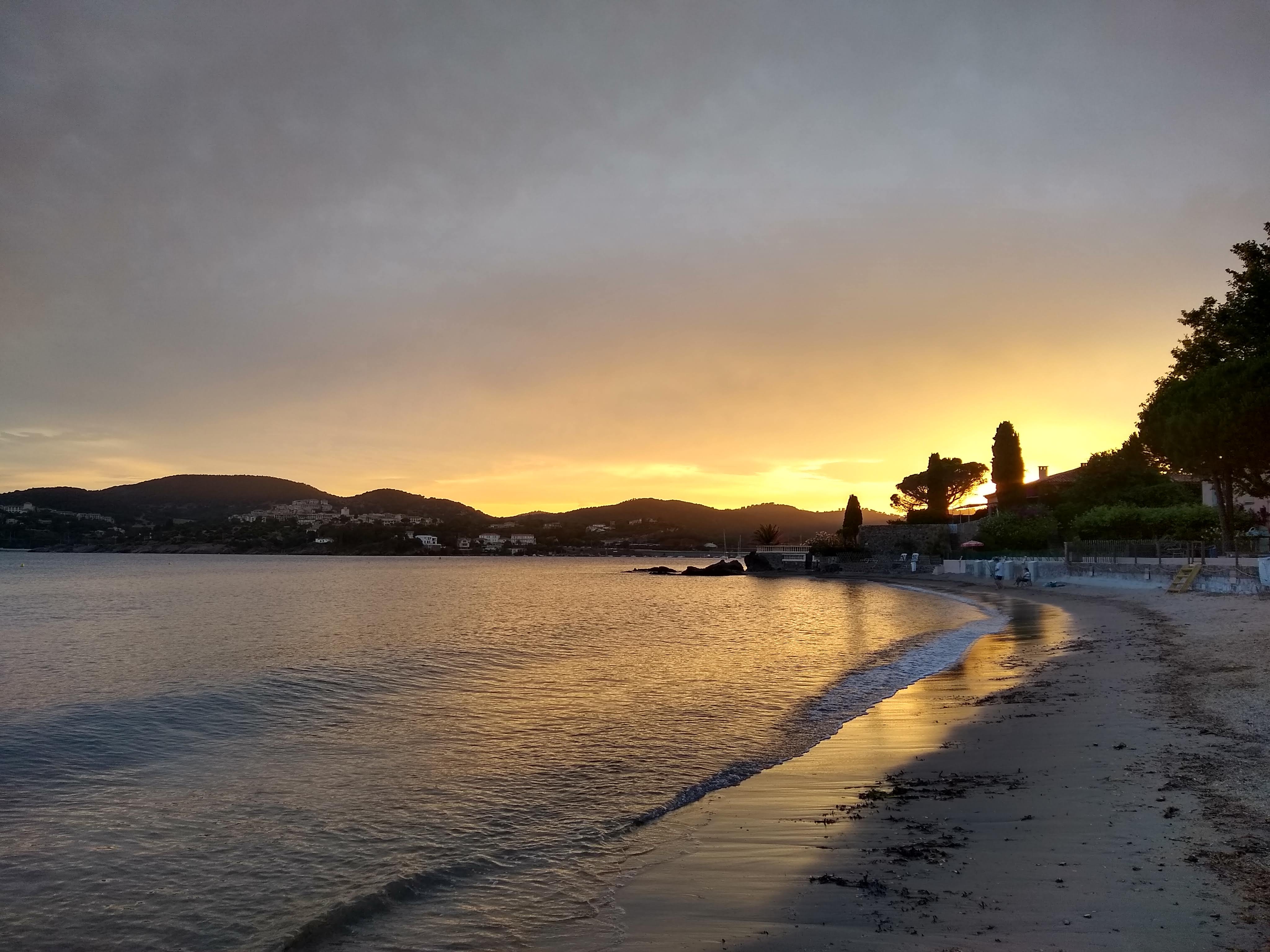 Plage sympa, du sable, et une belle vue sur le massif de l'esterel