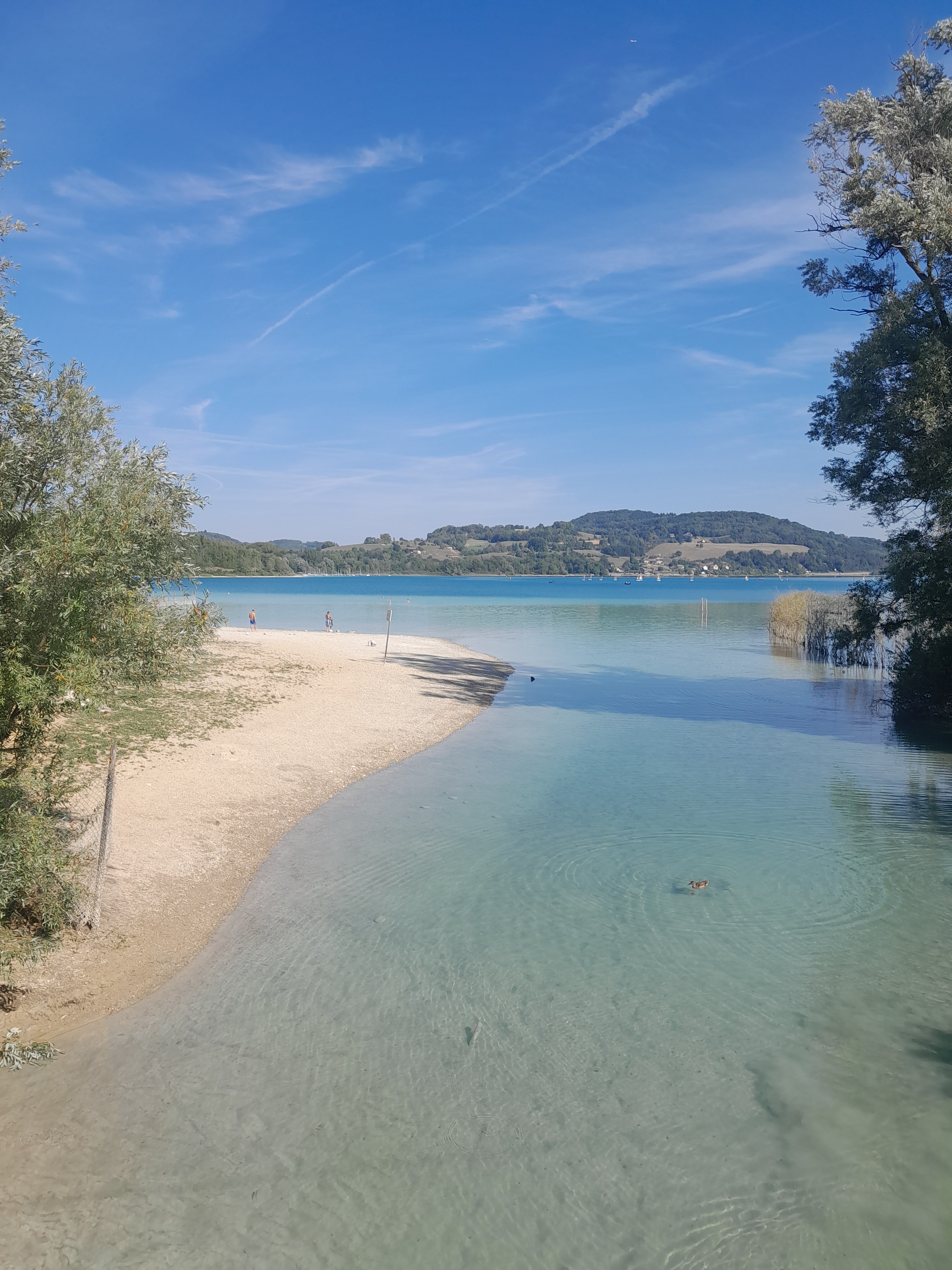 Une bien jolie plage (la seule gratuite du lac de Paladru) mais souvent trop bondée de monde. Difficile de trouver de l’ombre où il faut venir bien tôt…